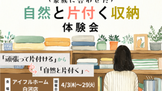 イベント2025年4月14日【4月限定イベント】\家族に合わせた/自然と片付く収納体験会【アイフルホーム白河店】