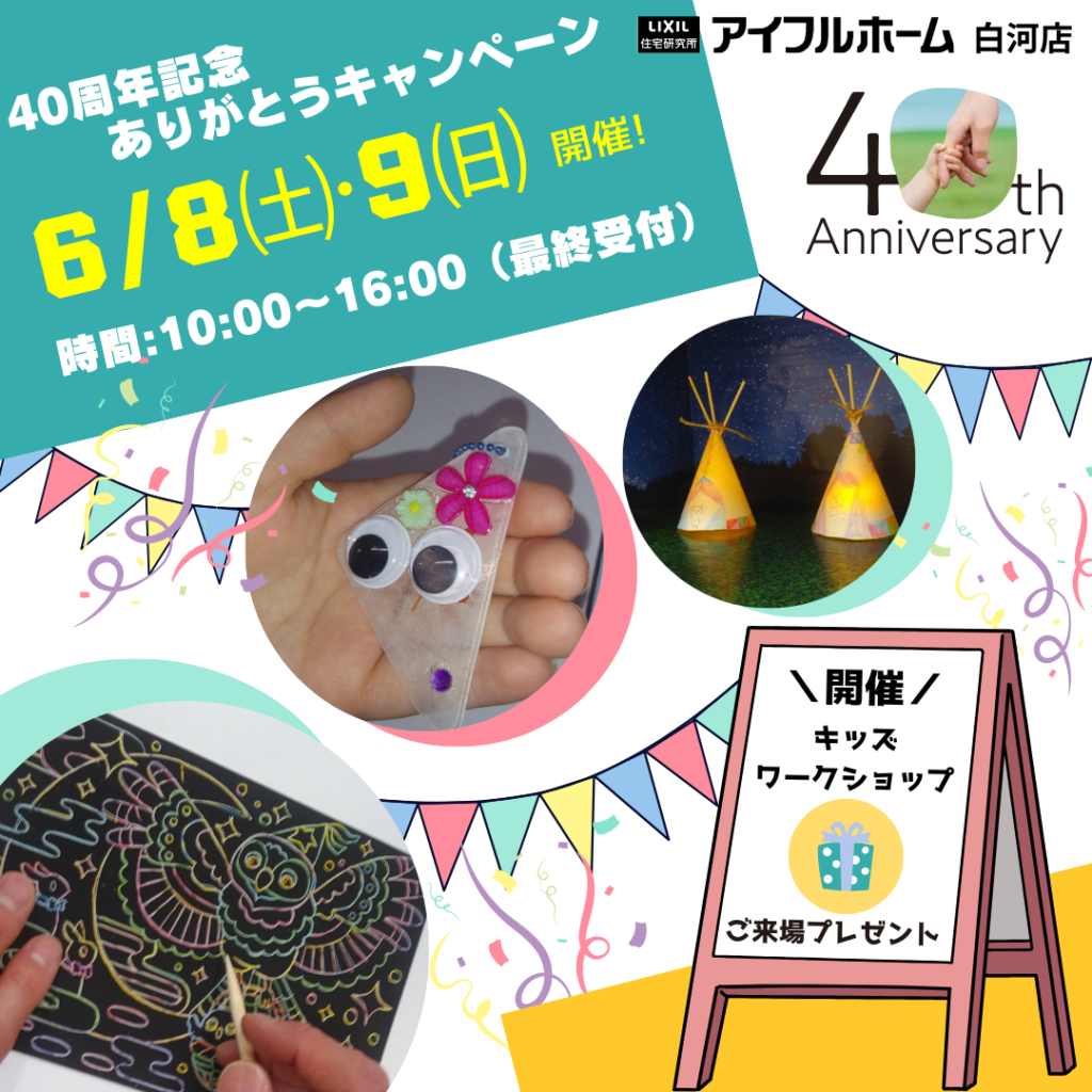 【6/8㈯・9㈰】~40周年ありがとうキャンペーン~\限定3組/新築住宅資金200万円分商品券プレゼント【アイフルホーム白河店】