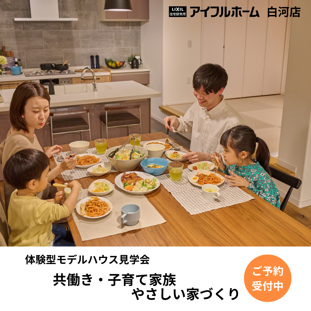 【7/8(月)~7/14(日)】体験型モデルハウス見学会~共働き・子育て家族にやさしい家づくり~【アイフルホーム白河店】