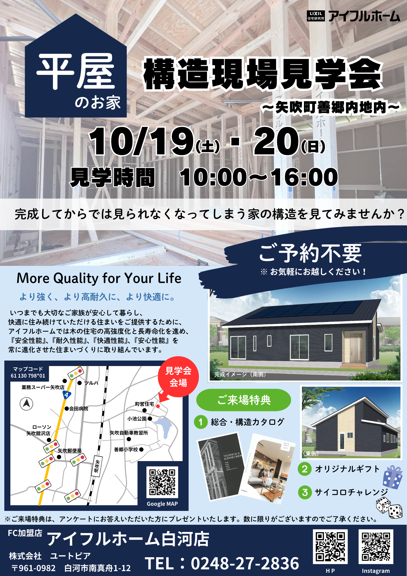 人気の『平屋のお家』の構造現場見学会【アイフルホーム白河店】