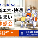 2024年4月22日 / 最終更新日 : 2024年4月22日 Yui Obata イベント 【5月限定開催】省エネ・快適住まい体感会【アイフルホーム白河店】 アイフルホームの省エネ・快適住まい体感会 しっかり体感!住まいの快適性能どんどん高くなる電気代! どんどん厳しくなる夏の暑さ!快適さと省エネ!大切な二つのことを一挙に解決してくれるのが、住宅の性能という視点。 快適で家計 […]