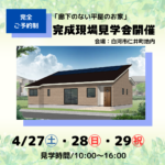 2024年4月15日 / 最終更新日 : 2024年4月15日 Yui Obata イベント 【完全ご予約制】『廊下のない平屋のお家』 完成現場見学会~白河市仁井町地内~ 4/27㈯・28㈰・29㈷【アイフルホーム白河店】 【完全ご予約制】『廊下のない平屋のお家』 完成現場見学会~白河市仁井町地内~ 4/27㈯・28㈰・29㈷ 見学時間/10:00~16:00 ■見どころ■❶太陽光発電(12.45㎾)で家計にやさしいエコな家❷自然光がたっぷ […]