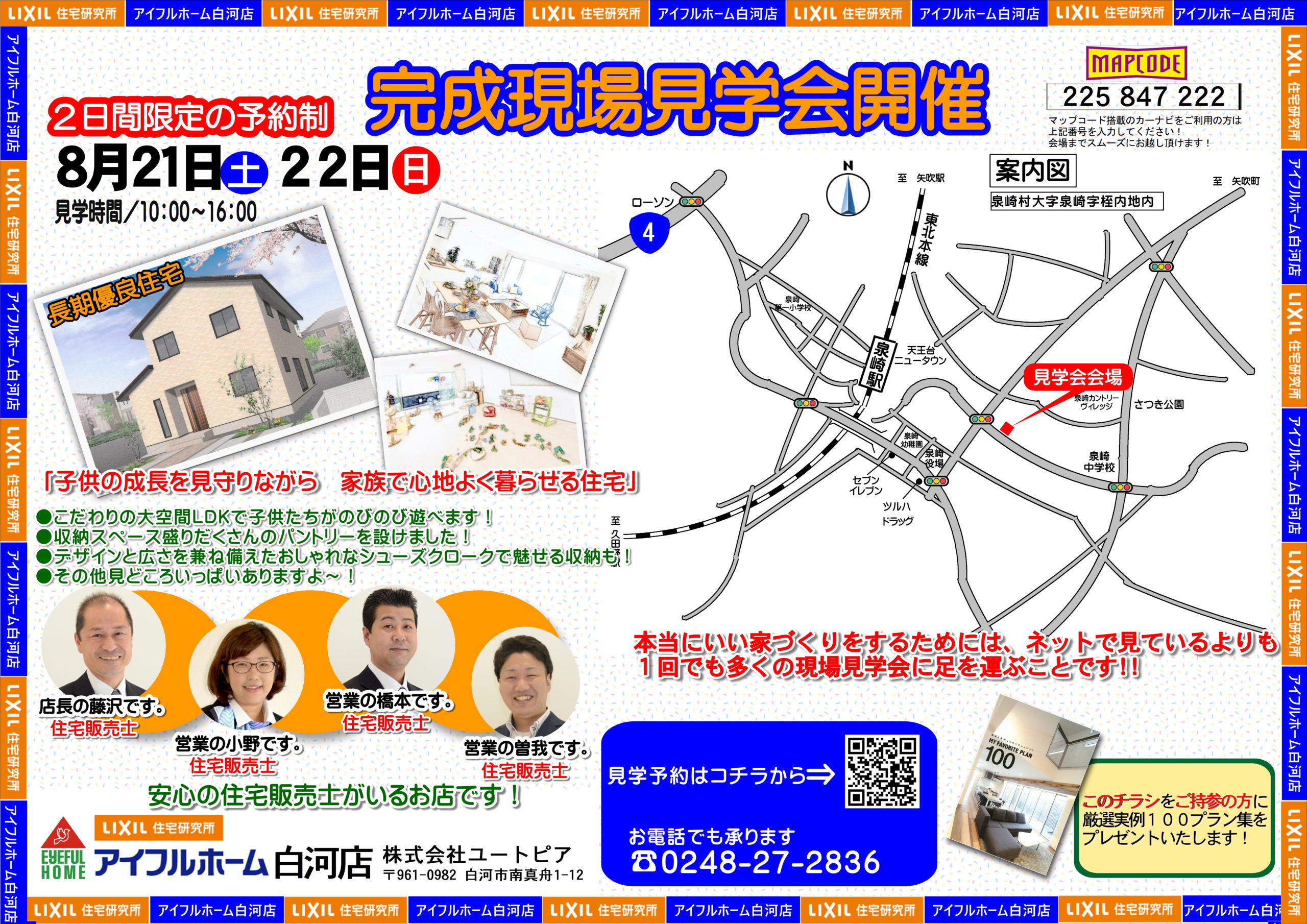 ご予約は、当ホームページにある現場見学会のご案内「現場見学会お申し込みはこちら」からお願い致します!ご予約お待ちしております! 場所はこちら↓