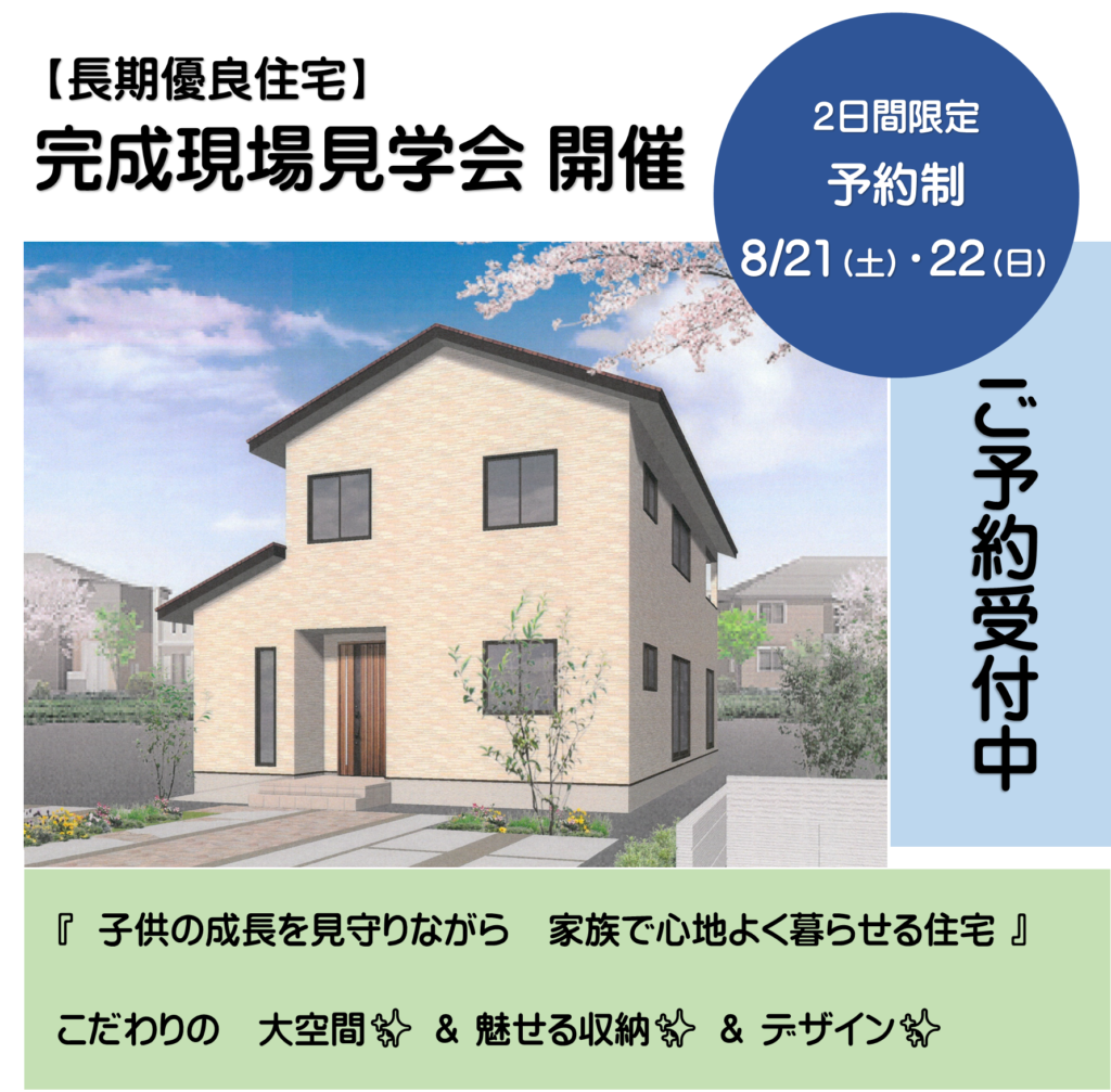 8月21日(土)・22(日)は、【長期優良住宅】完成現場見学会を開催します。